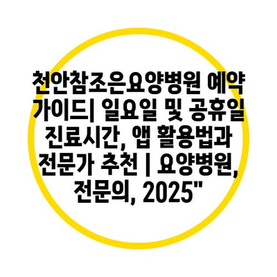 천안참조은요양병원 예약 설명서| 일요일 및 공휴일 진료시간, 앱 활용법과 전문가 추천 | 요양병원, 전연락, 2025