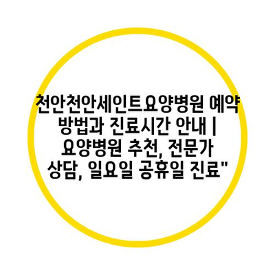 천안천안세인트요양병원 예약 방법과 진료시간 안내 | 요양병원 추천, 전문가 상담, 일요일 공휴일 진료”