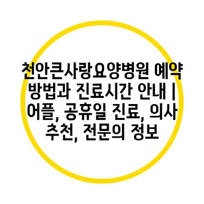 ✅ 천안큰사랑요양병원의 예약 방법과 진료 정보를 자세히 알아보세요.