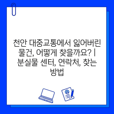 “천안 대중교통 분실물 찾기! 어디서, 언제, 무엇을 잃어버렸는지 기억하고, 분실물 센터에 연락하거나 온라인으로 신고하면, 소중한 물건을 되찾을 수 있을 거예요!”