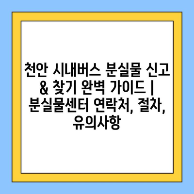 ✅ 천안 시내버스 분실물센터 연락처, 분실물 신고 절차, 유의사항 등 필요한 정보를 한눈에 확인하세요!
