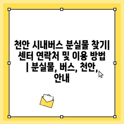 천안 시내버스 분실물 찾는 방법을 몰라 걱정이신가요? 센터 연락처와 이용 방법을 알아보세요!