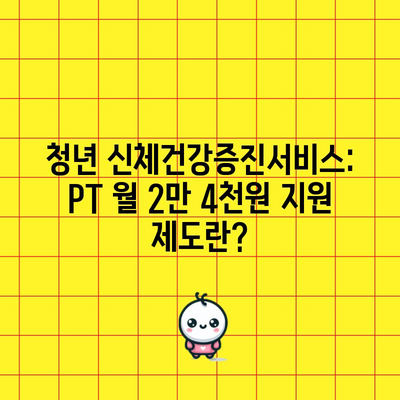 PT 월 2만 4천원 청년신체건강증진서비스 PT 지원 제도를 소개합니다. 청년들의 건강을 위한 맞춤형 프로그램과 혜택을详解합니다.