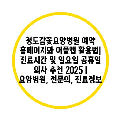 청도감꽃요양병원 예약 홈페이지와 어플앱 활용법| 진료시간 및 일요일 공휴일 의사 추천 2025 | 요양병원, 전연락, 진료정보 에 대해 자주 묻는 질문 TOP 5