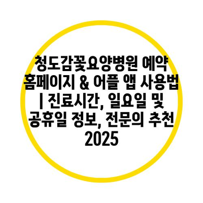 청도감꽃요양병원 예약 홈페이지 & 어플 앱 사용법 | 진료시간, 일요일 및 공휴일 정보, 전연락 추천 2025에 대해 자주 묻는 질문 TOP 5