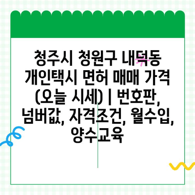 ✅ 청주 내덕동 개인택시 면허 매매 시세, 자격조건, 월수입, 양수 교육 등 궁금한 모든 정보를 한번에 확인하세요!