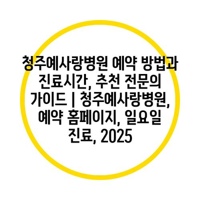 청주예사랑병원 예약 방법과 진료시간, 추천 전연락 설명서 | 청주예사랑병원, 예약 홈페이지, 일요일 진료, 2025 에 대해 자주 묻는 질문 TOP 5