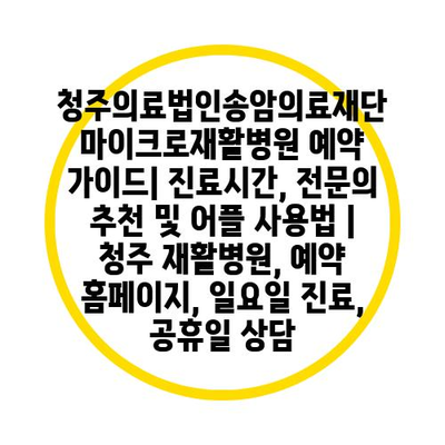 청주의료법인송암의료재단 마이크로재활병원 예약 가이드| 진료시간, 전문의 추천 및 어플 사용법 | 청주 재활병원, 예약 홈페이지, 일요일 진료, 공휴일 상담