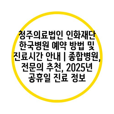 청주의료법인 인화재단 한국병원 예약 방법 및 진료시간 공지 | 종합병원, 전연락 추천, 2025년 공휴일 진료 정보에 대해 자주 묻는 질문 TOP 5