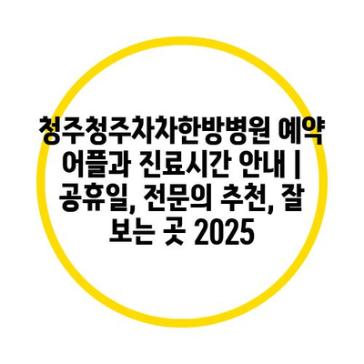 ✅ 청주청주차차한방병원의 예약 방법과 진료시간을 상세히 알아보세요.