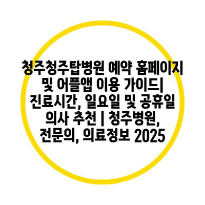 청주청주탑병원 예약 홈페이지 및 어플앱 이용 가이드| 진료시간, 일요일 및 공휴일 의사 추천 | 청주병원, 전문의, 의료정보 2025