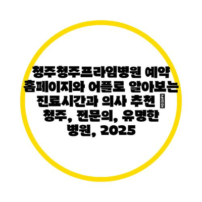 청주청주프라임병원 예약 홈페이지와 어플로 알아보는 진료시간과 의사 추천 | 청주, 전연락, 유명한 병원, 2025 에 대해 자주 묻는 질문 TOP 5