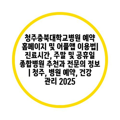 청주충북대학교병원 예약 홈페이지 및 어플앱 이용법| 진료시간, 주말 및 공휴일 종합병원 추천과 전연락 정보 | 청주, 병원 예약, 건강 관리 2025 에 대해 자주 묻는 질문 TOP 5
