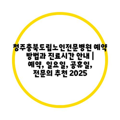 청주충북도립노인전문병원 예약 방법과 진료시간 공지 | 예약, 일요일, 공휴일, 전연락 추천 2025에 대해 알아보겠습니다.
