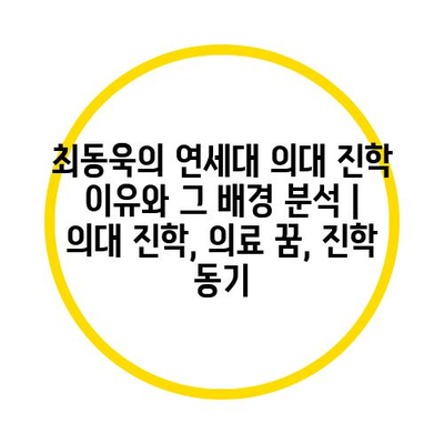 최동욱의 연세대 의대 진학 이유와 그 배경 분석 | 의대 진학, 의료 꿈, 진학 동기에 대해 자주 묻는 질문 TOP 5