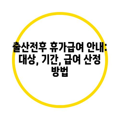 💡 출산전후 휴가급여에 대해 궁금한 정보를 한눈에 알아보세요. 💡