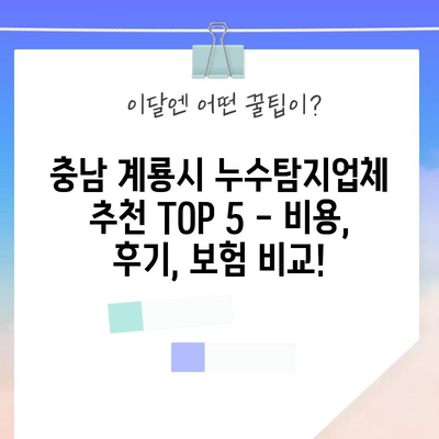 충남 계룡시 누수탐지업체 추천 TOP 5 – 비용, 후기, 보험 비교!