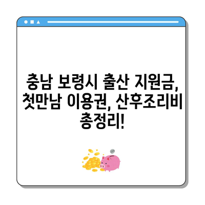 충남 보령시의 출산 지원금, 출산 장려금, 산후조리비 지원, 첫만남 이용권, 축하용품에 대해 자세히 알아보세요.