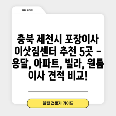 💡 제천시 최고의 이삿짐 센터를 한눈에 비교해보세요! 💡