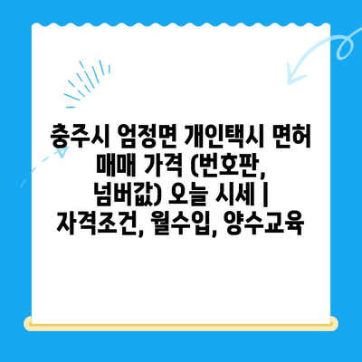 ✅ 충주시 엄정면 개인택시 면허 매매 가격은 얼마일까요? 오늘 시세와 함께 자격조건, 월수입, 양수교육 정보를 확인해 보세요.