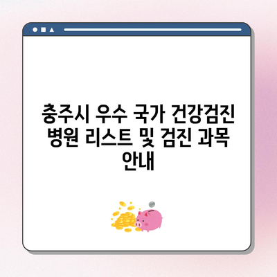 충주시 내에서 제공되는 국가 건강검진 병원 리스트와 우수 지정병원을 안내합니다. 검진과목 및 예약 방법에 대한 자세한 정보입니다.
