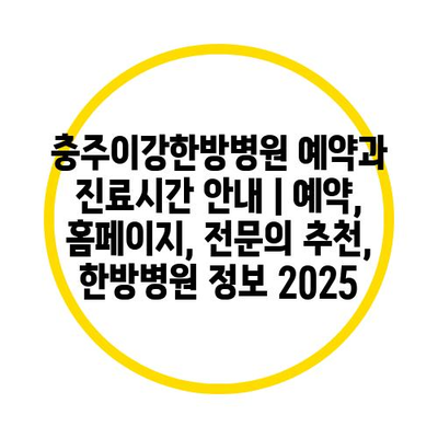 충주이강한방병원 예약과 진료시간 안내 | 예약, 홈페이지, 전문의 추천, 한방병원 정보 2025
