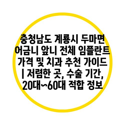 충청남도 계룡시 두마면 어금니 앞니 전체 임플란트 가격 및 치과 추천 가이드 | 저렴한 곳, 수술 기간, 20대~60대 적합 정보