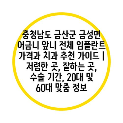 충청남도 금산군 금성면 어금니 앞니 전체 임플란트 가격과 치과 추천 가이드 | 저렴한 곳, 잘하는 곳, 수술 기간, 20대 및 60대 맞춤 정보