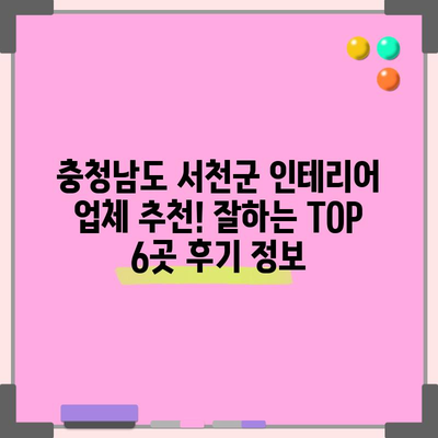 💡 충청남도 서천군의 우수 인테리어 업체들을 한눈에 알아보세요. 💡