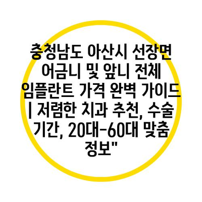 충청남도 아산시 선장면 어금니 및 앞니 전체 임플란트 가격 완벽 가이드 | 저렴한 치과 추천, 수술 기간, 20대-60대 맞춤 정보”
