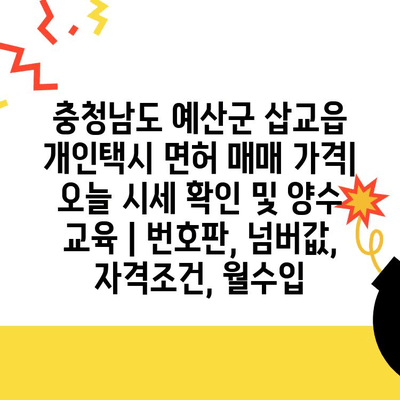 충청남도 예산군 삽교읍 개인택시 면허 매매 가격| 오늘 시세 확인 및 양수 교육 | 번호판, 넘버값, 자격조건, 월수입 에 대해 자주 묻는 질문 TOP 5
