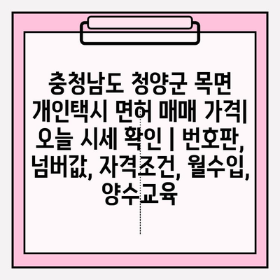 ✅ 청양군 목면 개인택시 면허 매매 가격이 궁금하신가요? 최신 시세 정보와 함께 자격 조건, 월 수입, 양수 교육 정보까지 한번에 확인하세요!