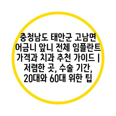 충청남도 태안군 고남면에서 임플란트 시술을 계획 중이라면, 비용과 신뢰할 수 있는 치과를 찾는 것이 중요합니다. 임플란트는 보통 1개당 수백만 원의 비용이 들기 때문에, 여러 치과의 가격을 비교해 보는 것이 바람직합니다.