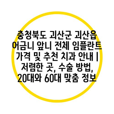 ✅ 괴산군에서 저렴한 임플란트 가격을 알아보세요!