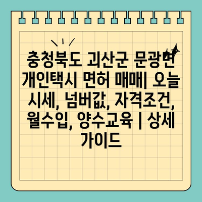 ✅ 괴산군 문광면 개인택시 면허 매매 시세와 월수입, 넘버값, 자격조건 등 상세 정보를 한눈에 확인하세요!