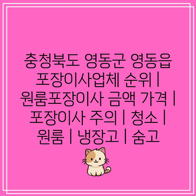 이 기사에서는 영동읍에서 최고의 포장이사업체 순위, 원룸 포장이사 금액 가격, 포장이사시 주의 사항을 공지해알려드리겠습니다.