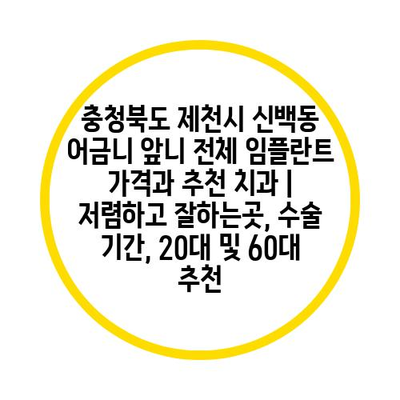 충청북도 제천시 신백동에서 어금니 및 앞니 전체 임플란트 치료를 생각하고 있는 분들을 위해 저렴하면서도 실력 있는 치과를 추천해 알려드리겠습니다. 임플란트 비용은 치과에 따라 차이가 나며, 수술 날짜 역시 개인의 상황에 따라 다를 수 있습니다. 특히 20대와 60대의 경우, 필요한 치료와 금액이 상이하므로 각각의 연령대에 맞는 내용을 제공하겠습니다.