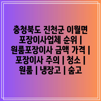 저희가 돕겠습니다. 이 글에서는 충청북도 진천군 이월면에서 서비스를 제공하는 최고의 포장이사업체 순위, 원룸포장이사 금액 가격, 포장이사 시 주의 사항, 청소, 그리고 원룸, 냉장고, 숨고에 대한 중요한 정보를 모두 소개해 드립니다.