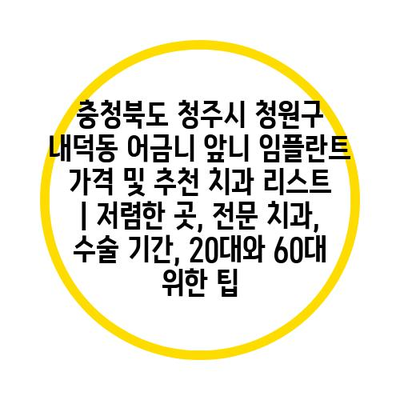 충청북도 청주시 청원구 내덕동에서 어금니와 앞니 임플란트를 생각하고 있다면, 전문 치과의 선택이 중요합니다. 저렴한 비용을 원하는 젊은 층부터, 신뢰할 수 있는 치료를 원하는 60대 이상의 환자까지, 다양한 니즈를 충족시킬 수 있는 치과를 소개해알려드리겠습니다. 각 치과의 특징과 가격대, 전문성을 인지하고 자신에게 맞는 치과를 찾아보세요.