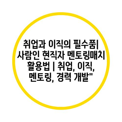 취업과 이직의 필수품| 사람인 현직자 멘토링매치 활용법 | 취업, 이직, 멘토링, 경력 개발”에 대해 자주 묻는 질문 TOP 5