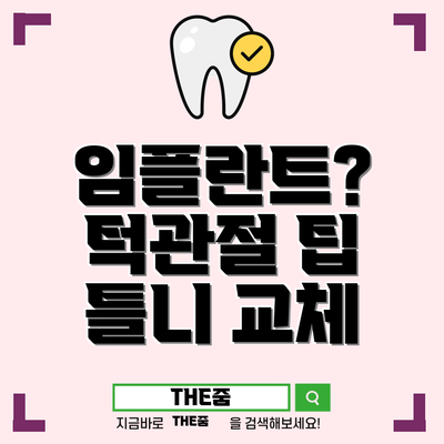 지금 이글을 통해 치과 임플란트와 턱관절 문제에 대해 알아보세요! 필요한 경우, 치과 전문의와 상담하여 최상의 치료법을 선택하시기 바랍니다.