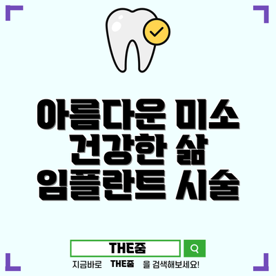 치과 임플란트는 단순히 잃어버린 치아를 되찾는 것 이상의 의미를 지니고 있습니다. 이 시술은 인간의 삶의 질을 높이며, 심미적으로도 큰 도움이 됩니다. 만약 당신이 치아 문제로 어려움을 겪고 있다면, 즉시 전문가와 상담해보세요. 아름다운 미소와 건강한 입안을 다시 되찾는 것은 결코 늦지 않았습니다!