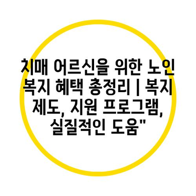 치매 어르신을 위한 노인 복지 혜택 총정리 | 복지 제도, 지원 프로그램, 실질적인 도움”