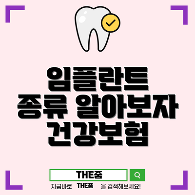 치아 임플란트는 잇몸 건강과 미소를 회복하는 데 중요한 역할을 합니다. 여러 종류가 있으며, 보험 적용이 가능하므로 상담을 통해 최적의 선택을 하시길 바랍니다. 임플란트에 대한 정보를 충분히 숙지하고, 필요할 경우 전문가와 상담하여 올바른 결정을 내리시기 바랍니다.