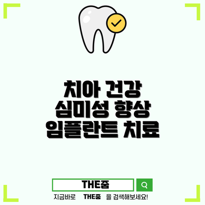 치아 임플란트는 기능과 심미성을 동시에 충족시키는 훌륭한 치료법입니다. 치료를 통해 잃어버린 치아를 회복하고, 더 건강하고 자신 있는 미소를 되찾을 수 있습니다. 임플란트 치료를 고려하고 있다면, 믿을 수 있는 치과를 방문하여 전문가의 상담을 받으세요. 긴장을 풀고, 치아 건강을 위한 첫걸음을 떼어보세요!