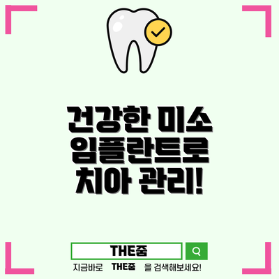치아 임플란트는 건강한 미소와 기능을 유지하는 데 큰 도움을 줍니다. 정확한 정보와 관리 방법을 통해 건강한 치아를 유지하고, 자신감을 높이는 여러분이 되시길 바랍니다. 임플란트에 대한 보다 깊은 지식을 가지고, 변화를 만들어 내는 첫걸음을 내디디시기 바랍니다!