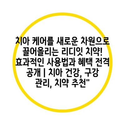 치아 케어를 새로운 차원으로 끌어올리는 리디잇 치약! 효과적인 사용법과 혜택 전격 공개 | 치아 건강, 구강 관리, 치약 추천