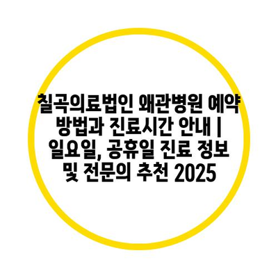 칠곡의료법인 왜관병원 예약 방법과 진료시간 공지 | 일요일, 공휴일 진료 정보 및 전연락 추천 2025 에 대해 자주 묻는 질문 TOP 5