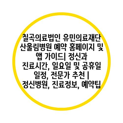 칠곡의료법인 유민의료재단 산울림병원 예약 홈페이지 및 앱 가이드| 정신과 진료시간, 일요일 및 공휴일 일정, 전문가 추천 | 정신병원, 진료정보, 예약팁