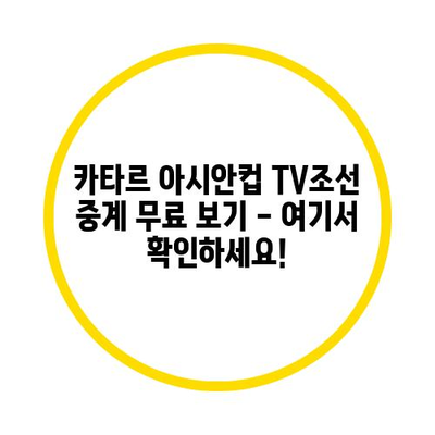 카타르 아시안컵 TV조선 중계 무료 보기 – 여기서 확인하세요!